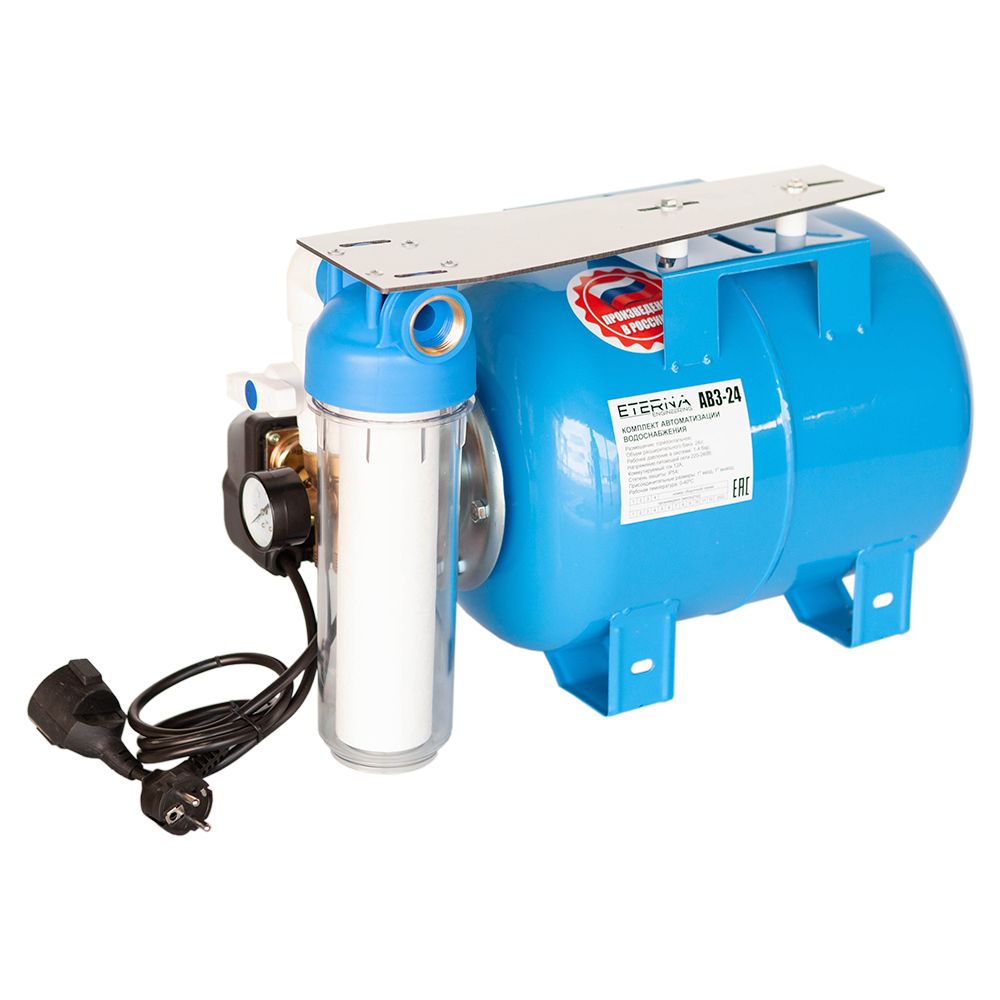 Комплекты автоматизации систем водоснабжения (автобаки) предназначены для обеспечения автоматизированной работы насосов в системах водоснабжения. Автобак состоит из гидроаккумулятора, реле включения и отключения насоса, манометра, запорного вентиля и фильтра механической очистки.