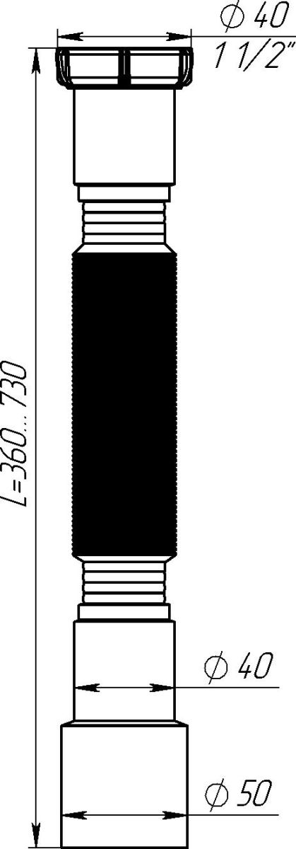 Гофрированная труба 1 1/2"х40/50 длиной 875 мм в разжатом состоянии предназначена для подсоединения сифонов к системе канализации. При соединении гофротрубы с выпуском, который приобратается отдельно, можно создать подноценный гофросифон. С одной стороны гофры на муфте с жестким буртиком установлена гайка 1 1/2", с другой - жесткий напаянный выход в канализацию под универсальный диаметр 40/50мм. Гофрированная труба позволяет отводить в канализацию стоки с температурой до 95°С, при условии, что её воздействие имеет кратковременный характер (100 литров жидкости с температурой не более 95°С). Изготовлена из высокопрочного полипропилена.