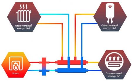 Коллектор Север-КМ2+1 поможет произвести разводку на 3 контура.