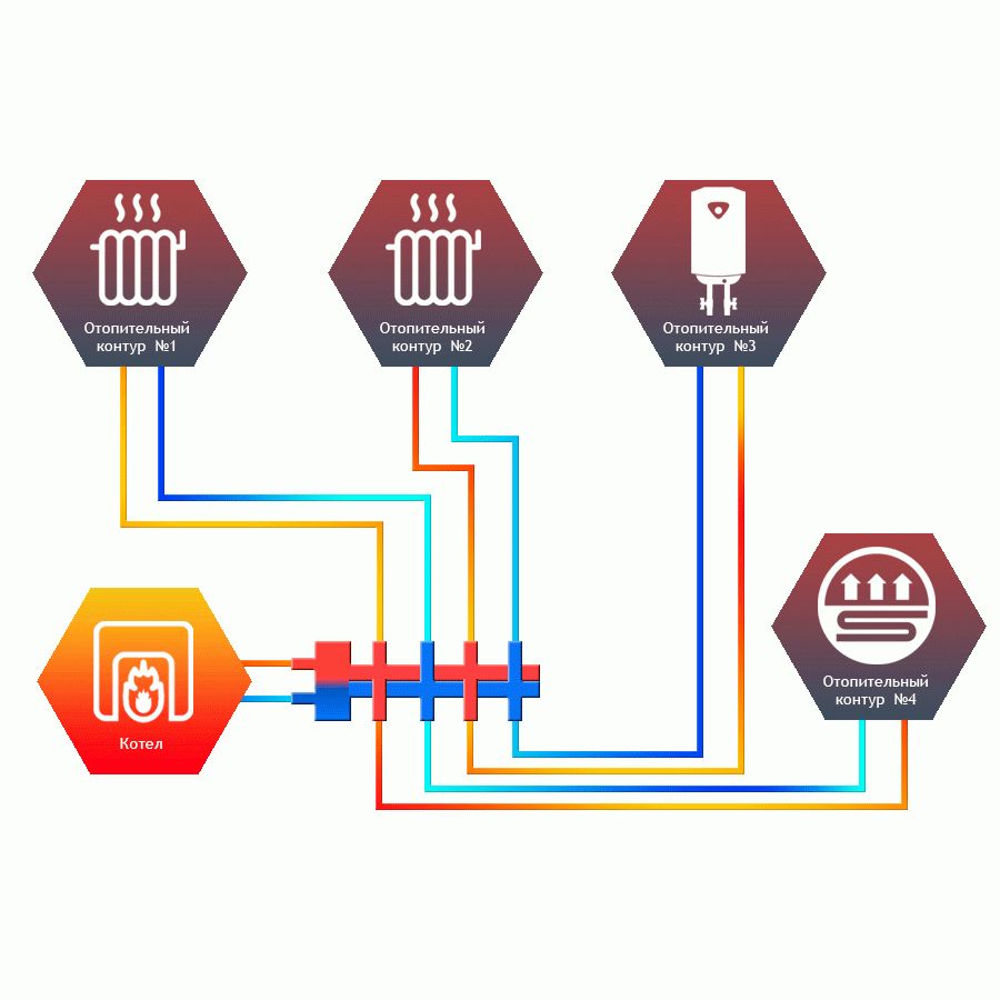 Гидравлический разделитель совмещенный с коллектором Север-T4 позволяет одновременно сбалансировать систему отопления и произвести разделение на 4 контура.