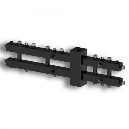 Подключение термометров: 1/2" в.р. (с обеих сторон коллектора, два - направленные к стене глушатся, благодаря этому подключение котлов слева/справа);