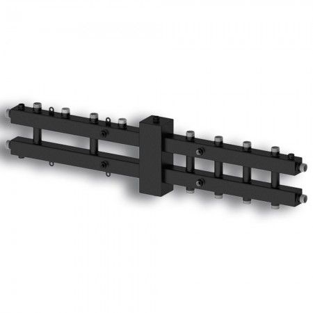 Подключение термометров: 1/2" в.р. (с обеих сторон коллектора, два - направленные к стене глушатся, благодаря этому подключение котлов слева/справа);
