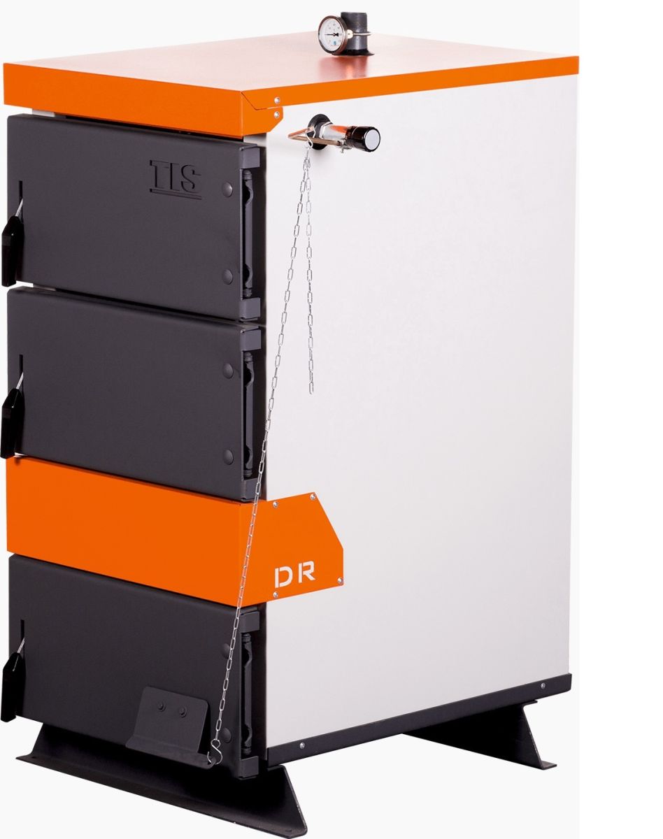 TIS PRO DR 27 - это современный котел работающий на твердом топливе. Инновационная конструкция гарантирует его безотказную и качественную работу, хорошие технические характеристики и полное сжигание топлива. Основной вид топлива древесина различных пород. Дополнительный вид топлива: уголь, торф, древесный брикет. Котлы работают с использованием естественного притока воздуха. Процесс горения не требует электроэнергии. Возможность сжигания больших поленьев размером до 50 см. Котёл изготовлен из 5 мм стали марки PGH265. Корпус котла имеет сплошную водяную рубашку, которая окружает топку со всех сторон. Эффективный теплообменник, расположенный в верхней части котла. позволяет извлекать максимальное котличество полученного при сгорании топлива тепла в дом потребителя без потерь.