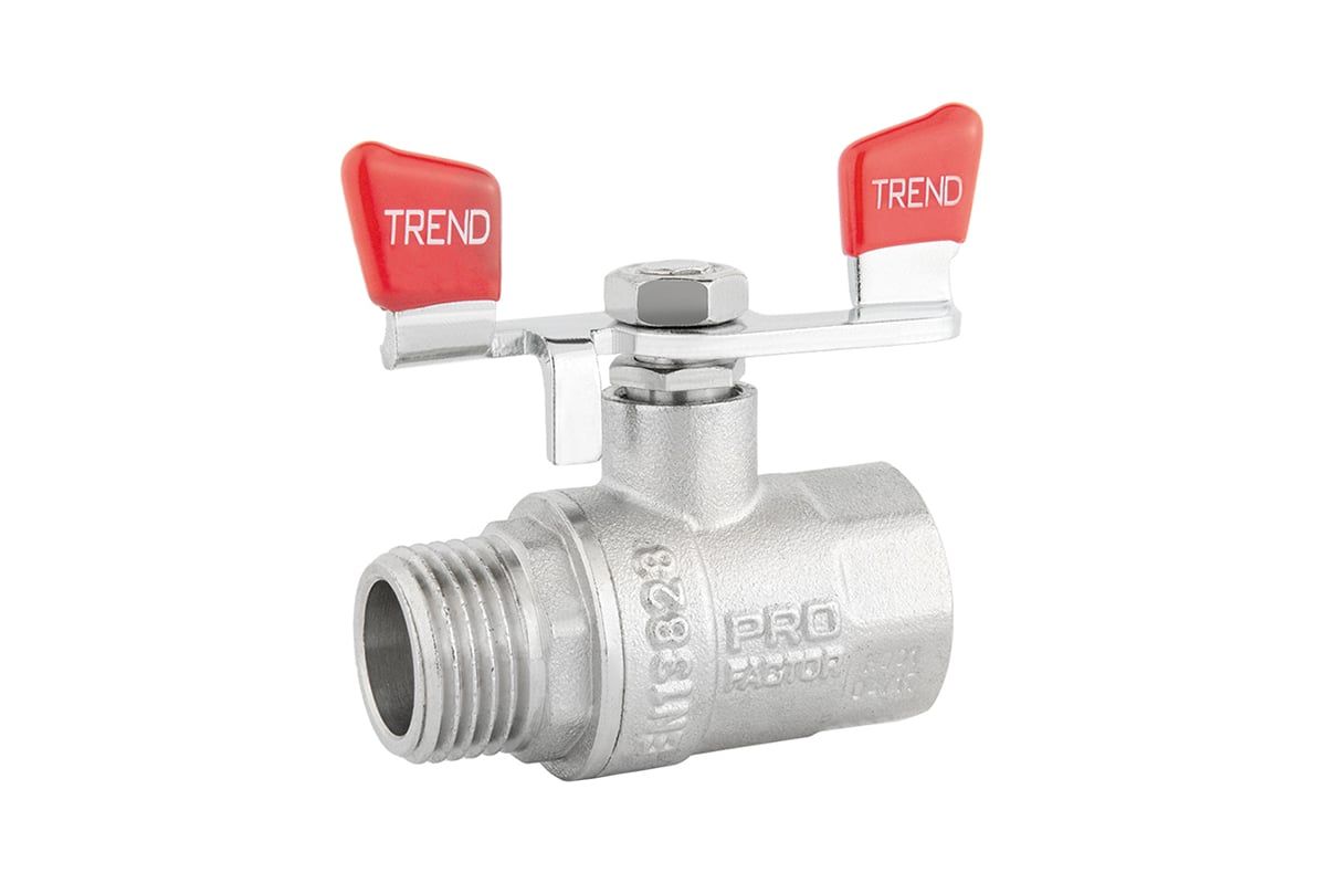 Шаровой кран PROFACTOR PF TREND в/н ручка бабочка 1 дюйм PF FBV 905 применяется в качестве запорной арматуры на трубопроводах систем питьевого, хозяйственно-бытового и промышленного назначения, горячего водоснабжения, отопления, сжатого воздуха, жидких углеводородов, а также на технологических трубопроводах, транспортирующих жидкости неагрессивные к материалам крана.