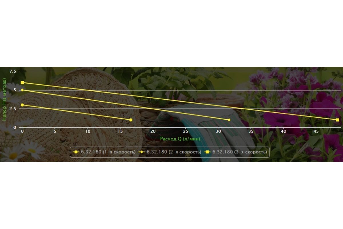 Режим 1: P1 = 46 Вт; Напор max = 3 м; Q max = 1.1 м*3/час;