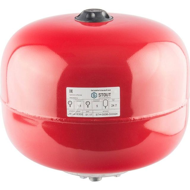 Расширительный бак 24 л STOUT STH-0006-000024 используется для компенсации температурного расширения в системе и стабилизации давления, сглаживания колебаний давления и компенсации гидравлических ударов в системах отопления с температурой теплоносителя до 100ºС.