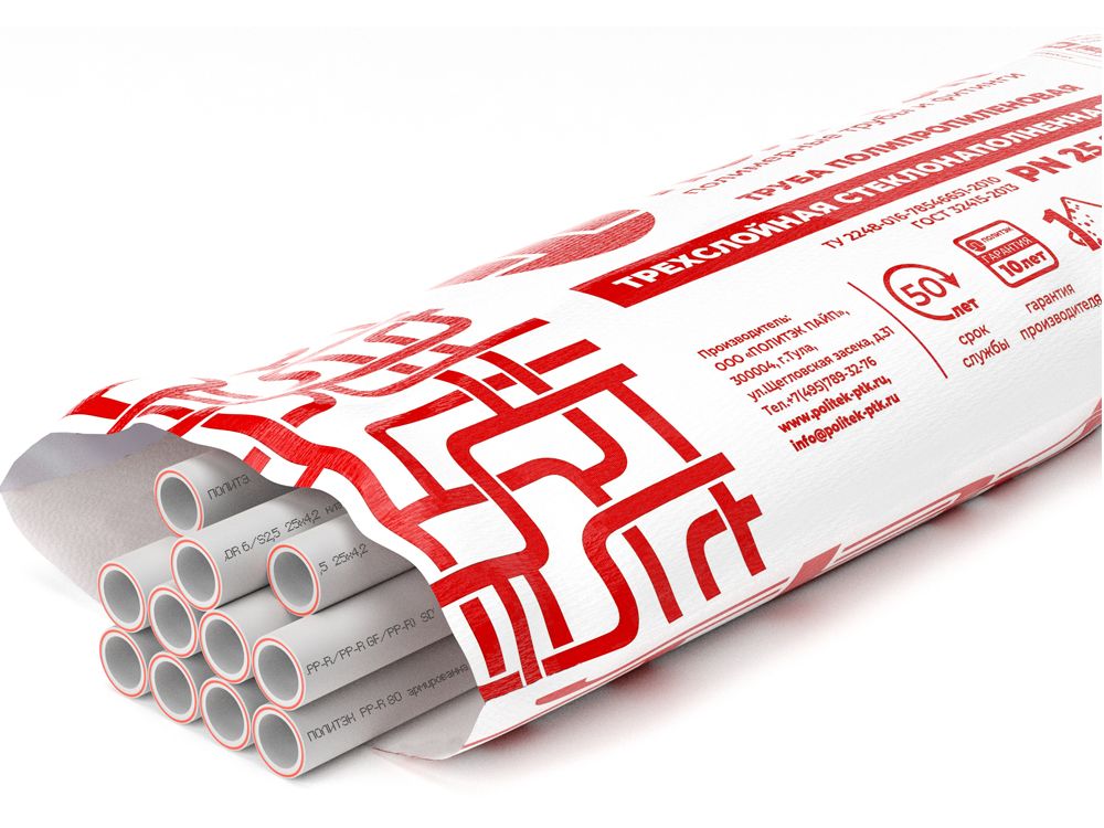 Трубы полипропиленовые армированные стекловолокном PN25 SDR 6 кольцевого сечения из статистического сополимера полипропилена PP-R 80 трехслойные стеклонаполненные (средний слой армирован стекловолокном) (PP-R/PP-R GF/ PP-R) т. м. «ПОЛИТЭК» предназначены для транспортирования воды с температурой до 70° С для хозяйственно-питьевого водоснабжения, низкотемпературного отопления, высокотемпературного отопления отопительными приборами с температурой 90°С.